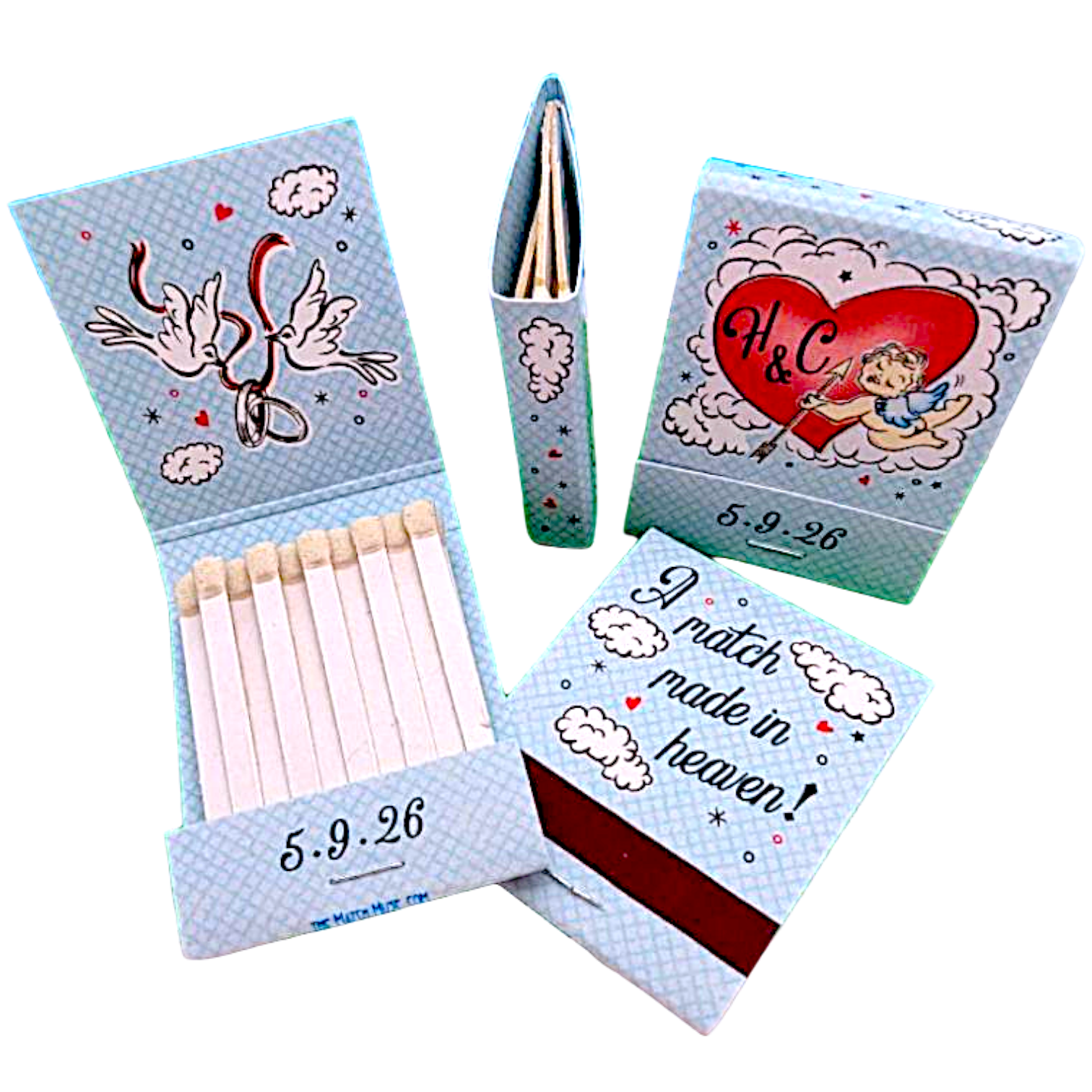 Cupid “Match Made in Heaven” Wedding Matchbooks ~ Sweet, Heavenly Wedding Favors